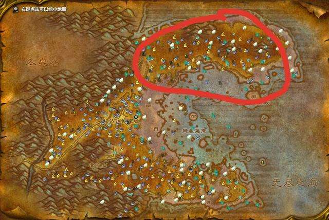 冬泉谷矿点个山鼠草还有个就是冰盖草,图中标记的位置富瑟矿比较容易出伴随着怪的等级也高,这里比较狭小去的朋友一定注意安全,冬泉谷工作室比较多黑莲花基本没戏。第四:艾萨拉
