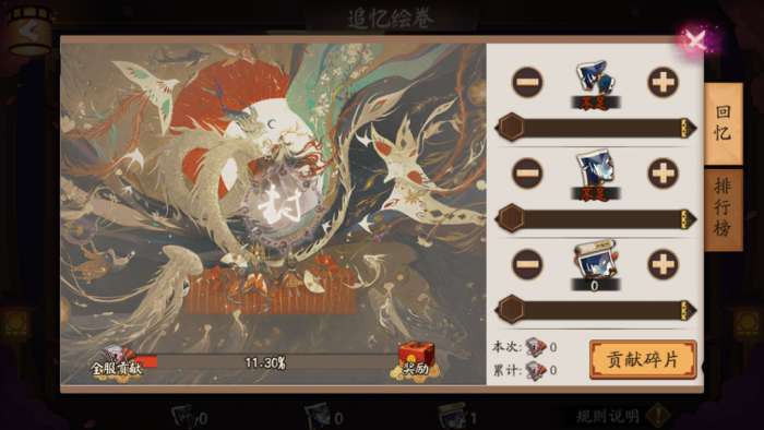 追忆绘卷活动由六张绘卷组成,需独立捐赠碎片进行修复,同时独立计算排名奖励