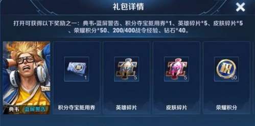 典韦蓝屏警告礼包的价格为:25战令币