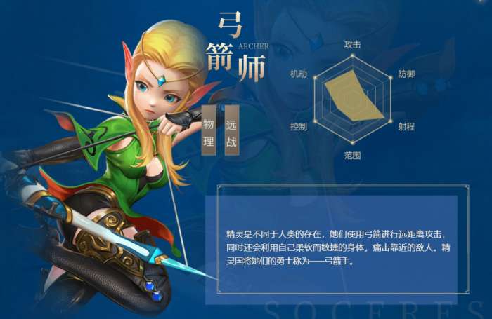 精灵是不同于人类的存在,她们使用弓箭进行远距离攻击,同时还会利用自己柔软而敏捷的身体,痛击靠近的敌人。精灵国将她们的勇士称为一弓箭手。