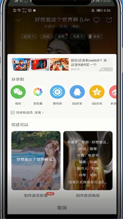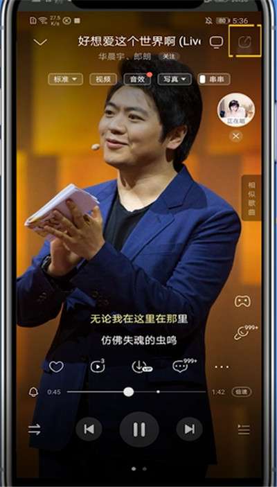2、打开一首你喜欢的歌曲,点击右上角的分享图标