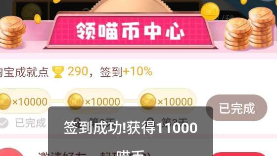 5.点击右下方的【领喵币】,每天点击【签到】和【做任务】获得喵币。