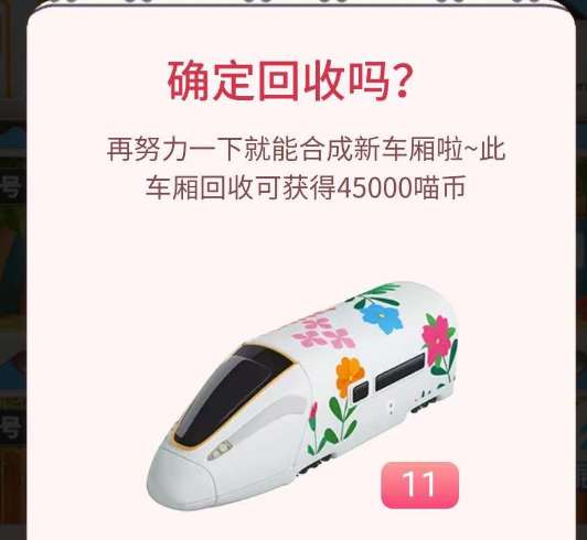 4.在弹出的对话框里面,选择【确定】回收车厢获得金币。