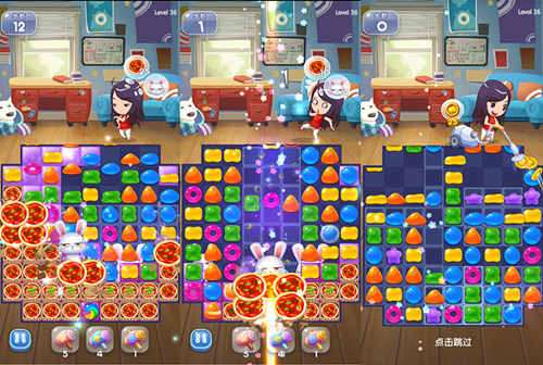 《爱情公寓消消消》结合了当下最时兴的三消玩法,并且加入了非常生活化的Q弹肥皂泡泡作为主要消除元素。你还可以通过寻找兔子、吃披萨、铺泡沫等达到过关目标:兔子通常隐藏在方块下面,玩家需要消除覆盖其上的方块才能救出兔子;披萨则一般装在外卖盒里,消除周围的方块可以一步步让《爱情公寓》角色打开盒子——拿到披萨——吃下披萨。在闯关完成之后,还会以吸尘器的形式帮你吸走奖励,让你在游戏中感受到平凡生活中的快乐!