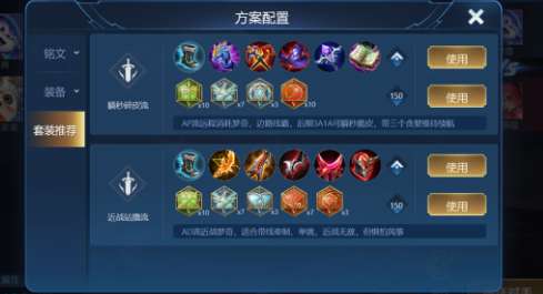 铭文推荐和出装推荐将会合并为套装推荐