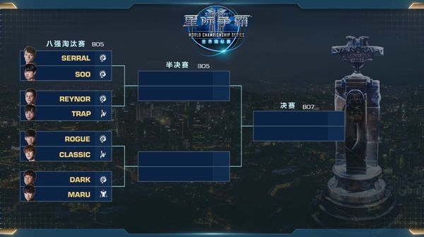 《星际争霸II世界锦标赛》全球总决赛将于 11月3日03:30起迎来最终决战!Serral、soO、Reynor、Trap、Rogue、Classic、Dark、Maru这8位世界顶尖选手将围绕着世界冠军的头衔以及高额的赛事奖金展开角逐。