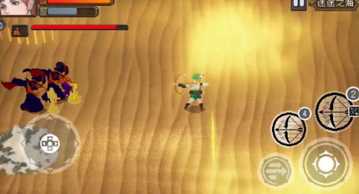 好,紧接着我们来到下一个小关,这个小关里面出现了一种紫色衣服的敌方,他可以复活已死亡的敌方。所以我立马上前对他就是一顿操作将其击毙。可以看到这里我一波操作失误,被青蛙吐痰堵在了墙角,在持续扣血,但是不要慌,对我们来说最大的威胁已经消失,仅有的一只青蛙不能再对我们造成什么伤害,失去的血量还可以用技能补回来,此时的局面已经十分明朗。