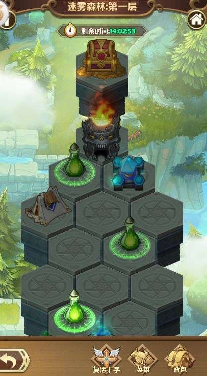 迷雾森林共有三层,每层都会有boss镇守,击败后可进入下一层,并获得宝箱奖励,包含钻石与各种稀有道具。