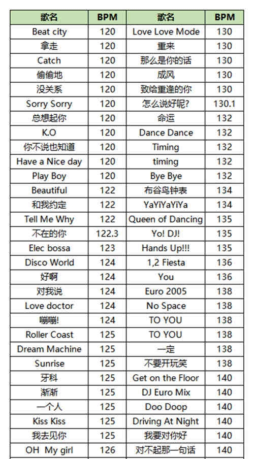 《劲舞团》全球赛比赛最低速歌曲为120BPM,其中大家最熟悉的应该就是韩国洗脑神曲《Sorry Sorry》了。《Sorry, Sorry》是韩国组合Super Junior的代表作,于2009年3月12日在韩国发行,一经推出就获奖无数,旋律具中毒性,歌词表达“从男孩到男人”的变化,Sorry与Shawty是歌曲核心语,描写男主角因自己先爱对方而说对不起的心境,以Baby作为对恋人的爱称,讲述男主角被爱人的女性气质和充满自信的形象而迷倒。