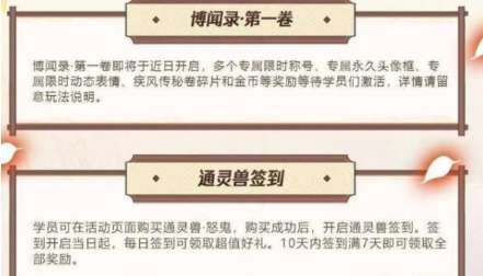 火影忍者手游每周三的木叶快报终究还是变成了晚报,毕竟我也不是心悦V3大佬,所以只能等待别人分享,不过好在这次的木叶快报还是有一些新的内容值得期待的。首先就是上周拆包发现的博闻录,没想到这么快就上架了,不过有一点比较疑惑,那就是在活动介绍中只提到了称号、头像框、动态表情及其他奖励,并没有提到拆包发现的高招忍者,难道是被省略了,还是说奖励有变动?我们就只能等待正式上架后才能知晓了。