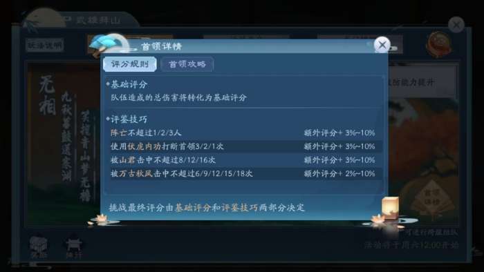 伏虎3式:当BOSS到最后一条血的时候,他就不会释放点名技能了,但是防御将会暴增,需要三人同时采集经书使用伏虎打段他的技能,防止因为防御太高输出不及而进入狂暴!