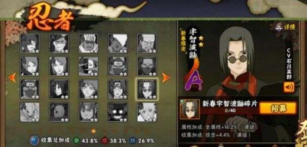 首先来看看返场的忍者是谁吧,第一个返场的忍者是新春限定宇智波鼬,这个忍者是今年春节新出的忍者,到现在为止已经返场过很多次了,返场频率还是很高的,如果不是着急要入手的话,可以留着一下次的返场,在进行招募,强度方面还是不错的,有T2左右的强度,可玩性还是挺高的。
