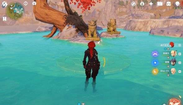 8、大树下3个大圆盘,还是岩主E技能。时间不够的话就叫朋友帮忙进来踩一下。