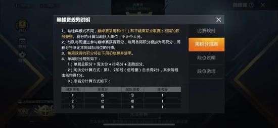 巅峰赛部分比赛规则