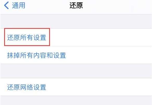 打开 iPhone 设置-通用-还原,然后选择“还原所有设置”即可。
