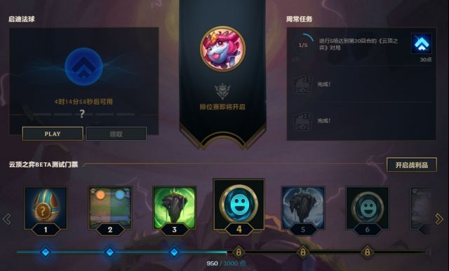 在每周您都会获得6个任务用于获得额外的XP。其中的两个会相对容易,可以在一次游戏中全部完成。另外两个将会需要您完成一定数量的游戏。后两个将更加困难,要求您完成具有挑战性的事情或需要一定您对于《云顶之弈》的策略和理解。三个任务将在给定时间激 活,一旦完成一个任务将会有一个新任务自动取代它。任务每周都会在补丁更新的同时进行轮换。
