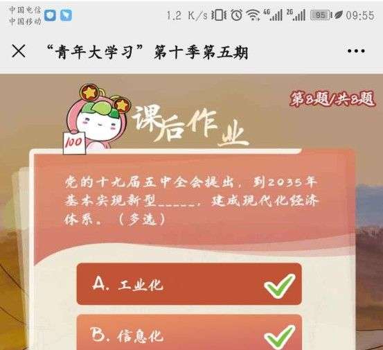答案解析:党的十九届五中全会指出,到2035年,我国将基本实现新型工业化,信息化,城镇化,农业先现代化经济体系。