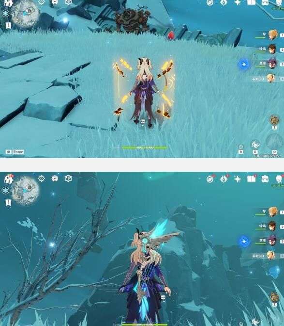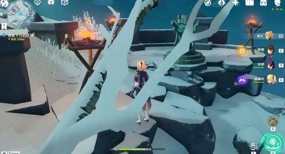 最后,从七天神像处便可来到来到山顶,解锁三块碎片后,道路的暴风雪已经消失,可以放心前往山顶,到达山顶后会发现,原本的碎片来到了山顶,需要再使用红石buff攻击解封,此时,每块碎片只需要攻击一次,由于三颗红石过于分散且距离碎片较远,此处建议大家使用弓箭角色。