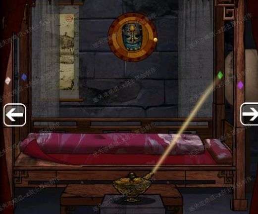 24、点击床的角落得到一个图形,这个是镜子的提示,牵动镜子附近的插槽启动镜子。可以得到铜镜。41.1