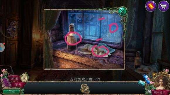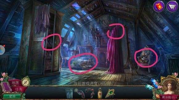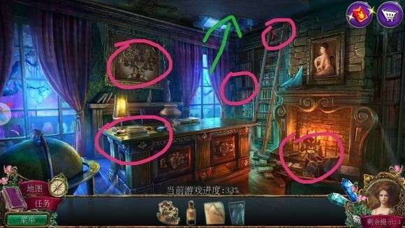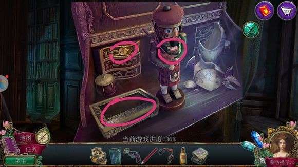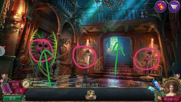 茶几——放浆果,按图提示完成蛋糕(放花,填花色)——根据剧情到二楼房间