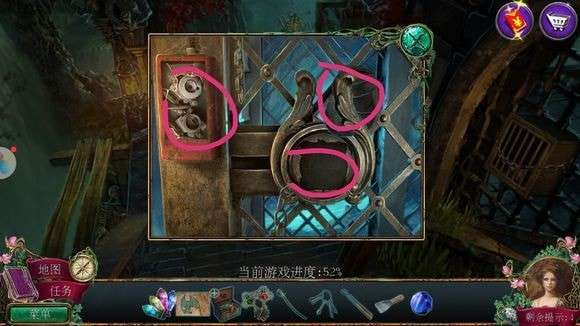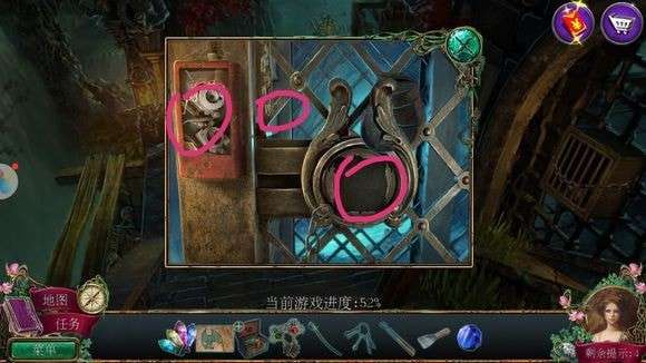 铁栅栏门——安水晶眼,根据提示找到相应项——可以进到港口