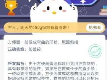 蚂蚁庄园方便面一般做成弯曲的为什么,这个是日常生活中都会遇到的问题,为什么会这样呢,怎么不做成直的,其中的原理是什么,下面就来介绍下方便面为什么是弯曲的。