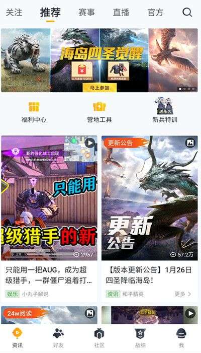 1、首先下载和平营地最新的3.10版本的测试版;