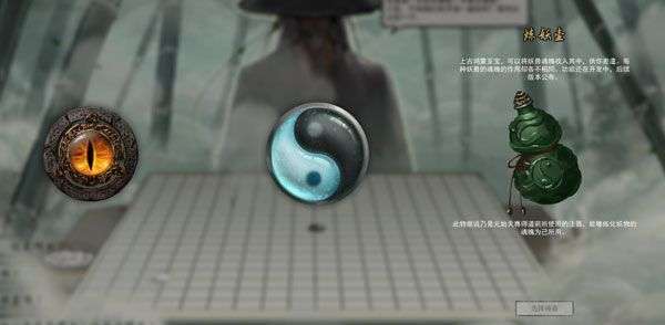 在游戏开局有三个可选的神器,分别为:昊天眼,双鱼佩,炼妖壶。