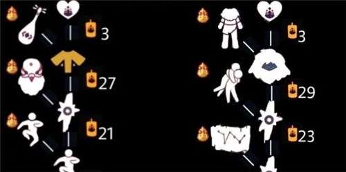 即:树状图最顶端的兑换物品。如上图所示,每个先祖的兑换树状图顶端,都有一颗爱心,用三根季节蜡烛就能兑换了。