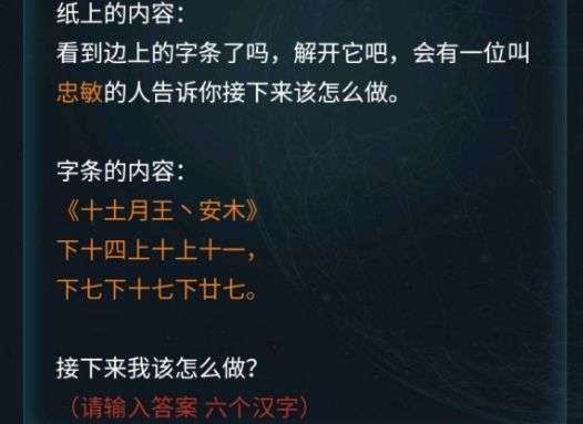 看到边上的字条了吗,解开它吧,会有一位叫忠敏的人告诉你接下来该怎么做。