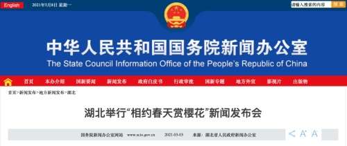 3月3日,湖北省“相约春天赏樱花”新闻发布会上,湖北省武汉市文化和旅游局宣布将与腾讯公司达成合作,共同举办2021武汉新花城旅游电竞嘉年华暨“王者荣耀”第三届全国大赛。