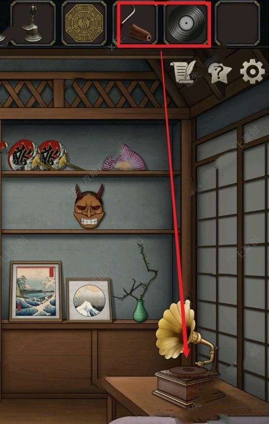 57.将唱片还有摇杆放上留声机的位置,就可以得到一串密码。57.1