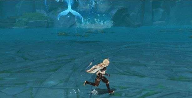 纯水精灵会进入长长的前摇阶段,前摇之后会定向对旅行者进行水流攻击,单人模式中几乎无法躲闪,被定位就逃不掉了,多人模式中随机定位一位旅行者进行攻击。