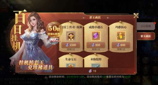 百日挂机过程中将随机掉落彩玉,使用彩玉道具可增加彩玉货币。