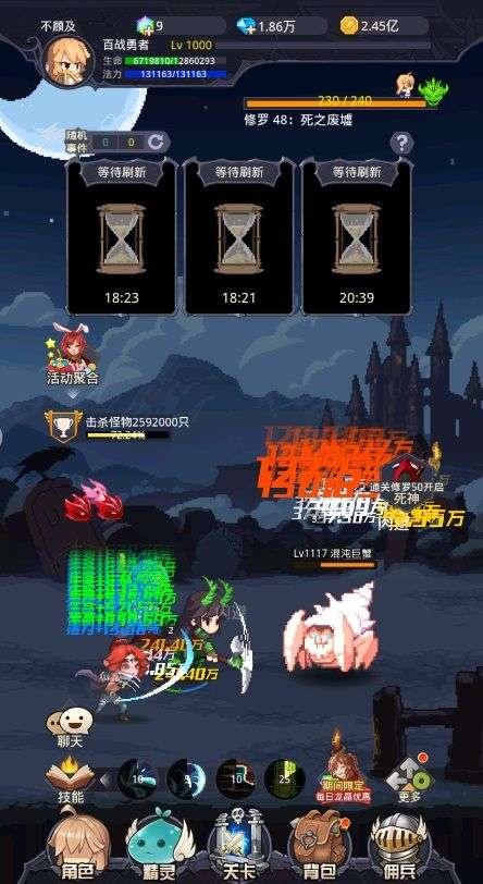 怎么过修罗,肯定还是传说中的史莱姆落地斩了,这游戏已经不是放置游戏了,变技术游戏了,每一关最后一只小怪打死,马上按①②,