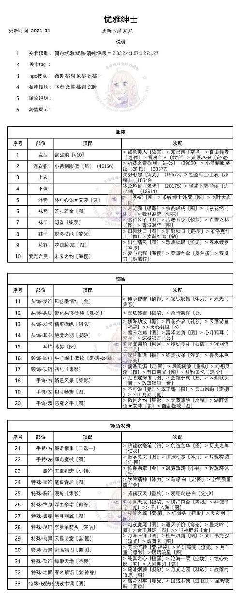 关卡权重、华丽 活泼 可爱 性感 清凉=1.33:2.27:1.67:2.13:0.67