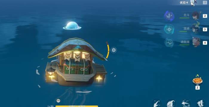 在破坡岛下方(具体位置如下图),可以看见一个水泡。开船踩上去就会在近距离再次出现水泡,一直踩到第八个水泡出现调查,调查获得1W摩拉