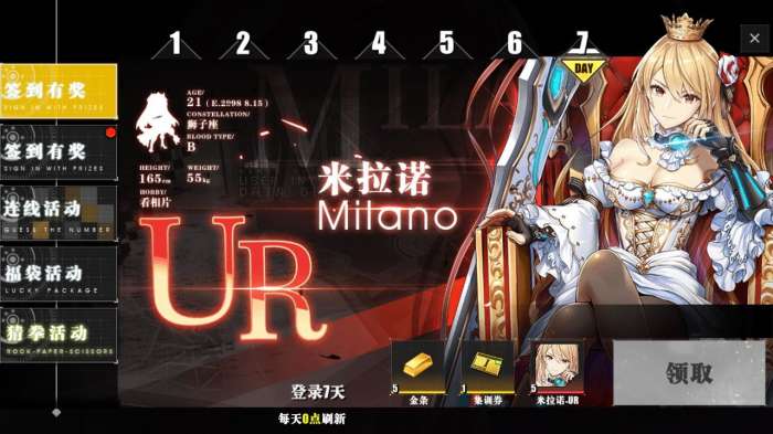 1、签到送伙伴:7日签到送2个UR和5个SSR;