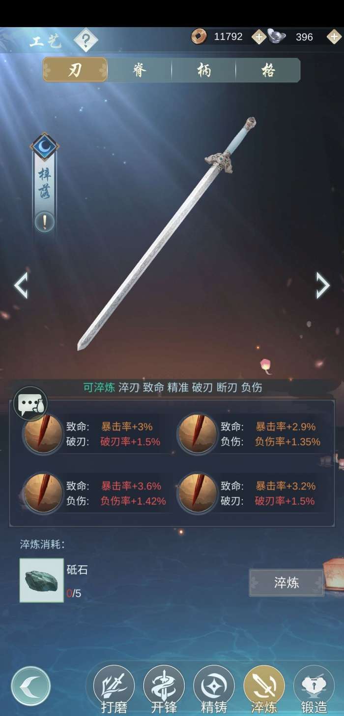 核心洗法:6破刃 5负伤 4暴击 3轻铸 1重核 1断腕 其余随意;