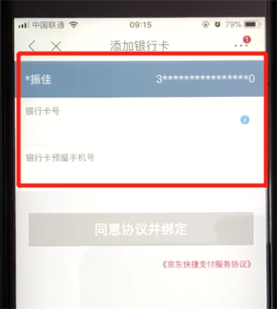 4.点击添加银行卡,我们只需要输入你的银行卡信息以及你的银行卡预留手机号,点击同意协议并绑定即可。