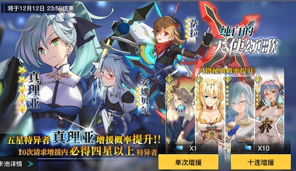 增援界面有三个选项,选择限时增援,限时增援请求达到10次必得四星以上特异者,使用神谕之证获得增援,限时增援有效期(12月12日23:59结束);