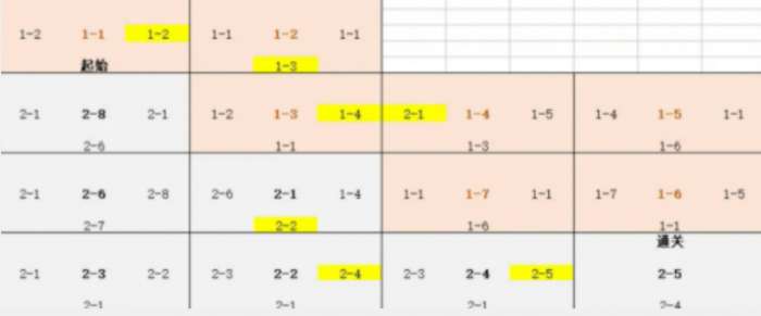 上图中红色的部分是第一层的房间,灰色的部分为第二层的房间。图中标黄的位置即.上段所说的谜题关房间通关路线,顺序为“1-2,1-3,1-4,2-1,2-2,2-4,2-5”,而其余房间的进入方位也均在图中进行了标注,玩家可以尽情自由探索~完成本章全部内容可领取金色装备和抽卡券等奖励。以.上就是通关白虎堂的全部攻略啦,预祝各位豹子头闯关成功~