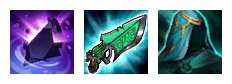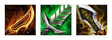 帝国之斧:鬼索狂暴之刃、汲取剑必备,第三件任意,激射火炮、无尽之刃、锐利之刃皆可。