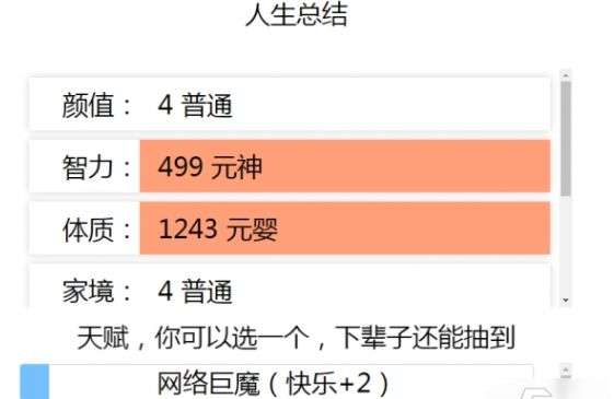 注:千万不要选择减少体质的天赋,克苏鲁试过一次,大该是当年什么事情都不会发生,这个在前期或许可以保命,但在后期会非常影响修炼速度,不建议入手。