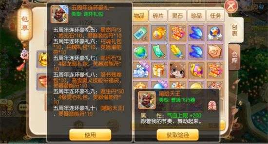 喜迎游戏五周年,在活动期间内,凡是30级以上的玩家,只要登录游戏就能领取到价值连城的五周年庆连环礼包,连开7天,每天都是好礼哟。并且最后一天为各位仙友们准备下的豪礼,还是嘻哈天王飞行器,来来来,跟着嘻哈天王的节奏一起舞动起来吧!
