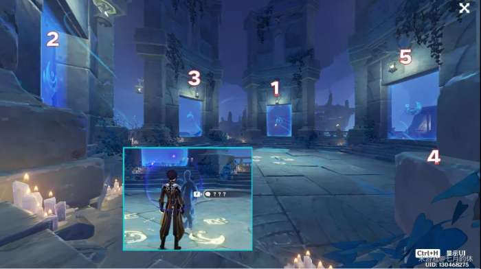 然后传送到蛇心之地,地面上,按照下图顺序一次触碰下这个5个符文图案光幕,出现残魂【???】,与其对话自动接取【世界任务:食莲者】。