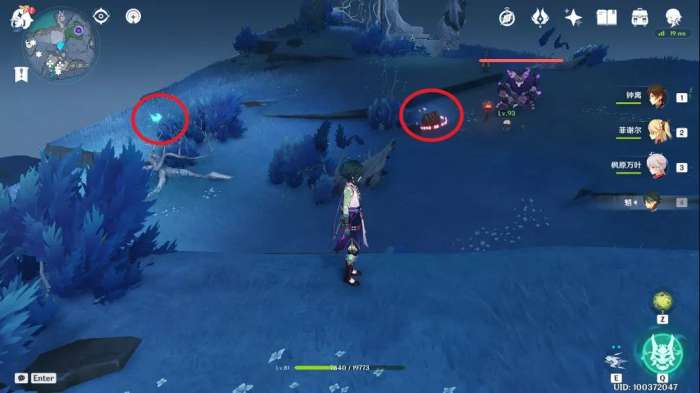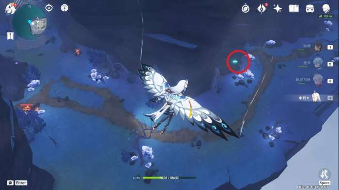 5、来到最南方的传送点,向西北看去,可以看见一个仙灵,引导即可