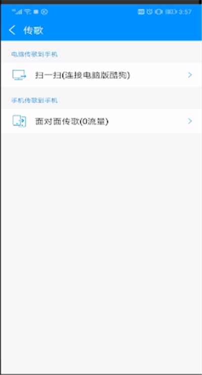 如果我们在用酷狗听音乐的时候,想把喜欢的本地音乐分享给其他人或者电脑酷狗,就可以使用酷狗音乐的传歌功能,来看看PK手游网为你准备的图文教程吧: