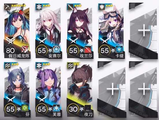 其他干员:单奶*2、常规先锋、工具人夜刀、常规重装、常规近卫