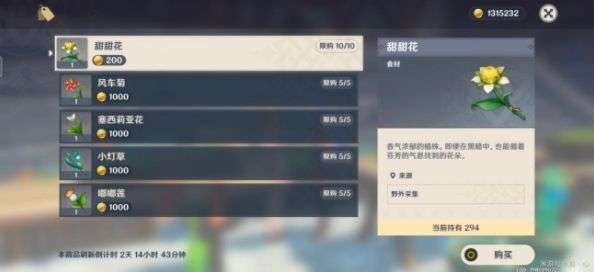 甜甜花可以在芙萝拉这里买到就在立本的对面,每天可以买十朵。
